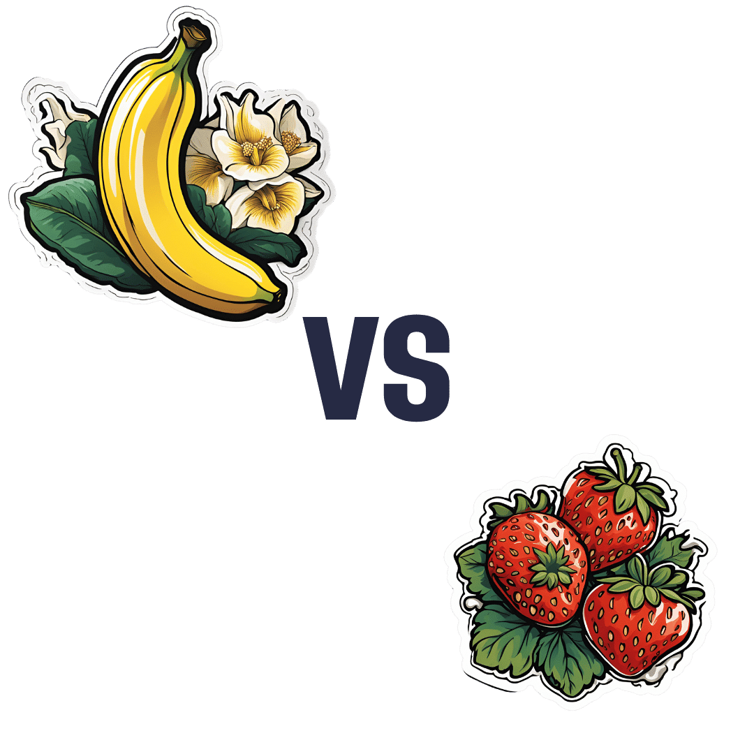 Pitting bananas against strawberries, our verdict is in: bananas take the lead in nutritional content and vitamin benefits, scoring a fruity victory. (Source: 10Almonds)